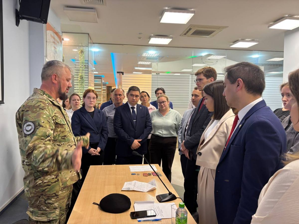 В рамках «Школы начинающего служащего» студенты и молодые специалисты министерств и ведомств Республики встретились с Анваром Мухаметзяновым – инструктором Центра «ВОИН», участником специальной военной операции и кавалером Ордена Мужества.
